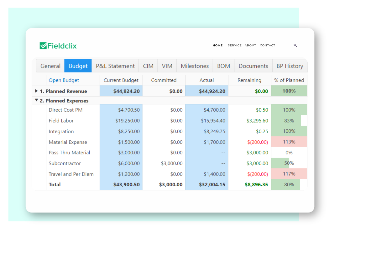Monthly accounting reports aren't sufficient for tracking job costs across multiple active projects. Fieldclix lets you establish a budget for any project, regardless of duration, and automatically updates labor, material, vendor, and field costs daily to keep you on track to make a profit.